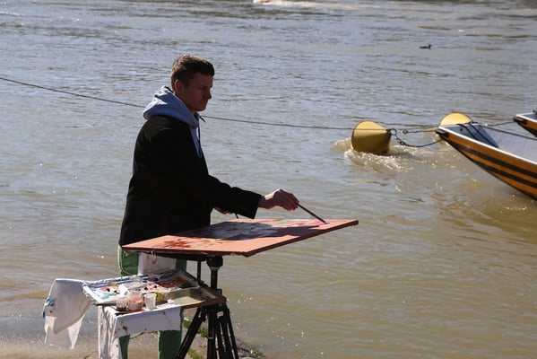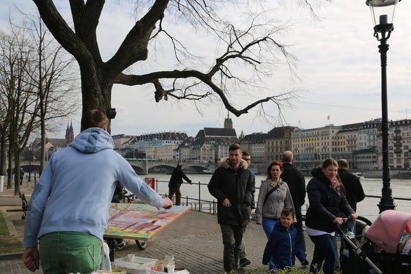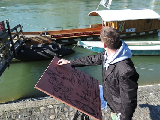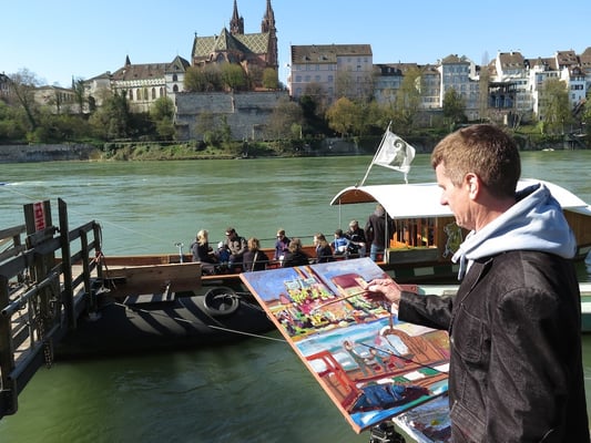 Einer der sich auch des öfteren auf, aber vor allem neben den Rheinfähren aufhält ist Peter, mein Basler Gastgeber. Er bot mir ein Zimmer in seiner Wohnung am Rhein an, in welcher ich einige Tage residierte, um am Rheinufer Zeit zu haben die Staffelei aufzustellen und zu malen.