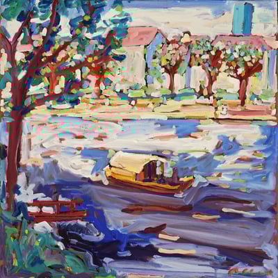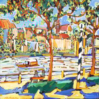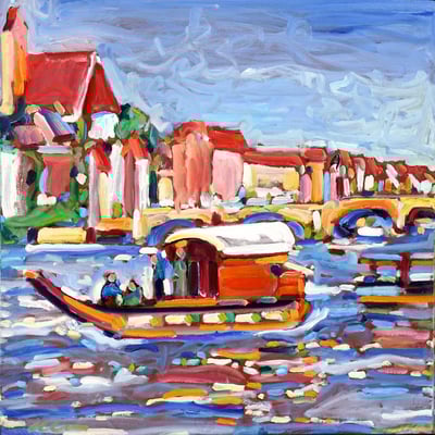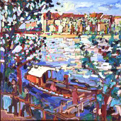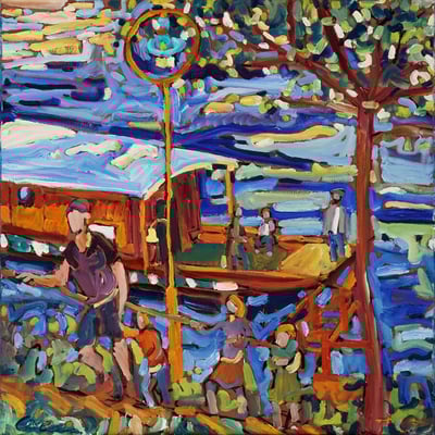 Rheinfähre „Leu“ Anlagestelle Münster, Öl auf Leinwand, 80x80, Bernd Alder, April 2015 ©www.alderart.ch